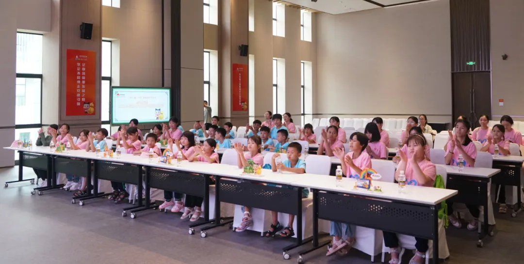 活动一开始,孩子们便迫不及待地踏入了尊时凯龙药业集团的大厅。3D数字化看板上的生动画面,让孩子们仿佛置身于一个充满科技与创新的现代制药工厂。他们瞪大眼睛,好奇地观察着每一条生产线、每一台设备,听着讲解员介绍尊时凯龙药业的儿药发展历程。
